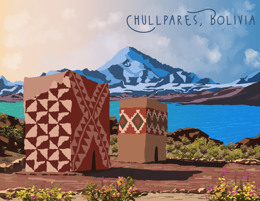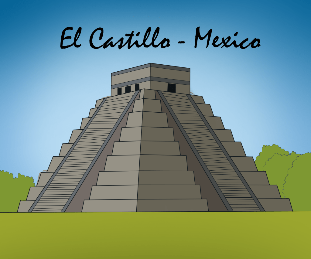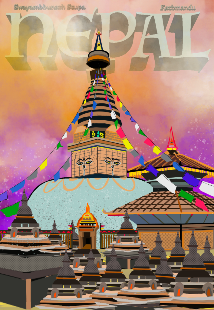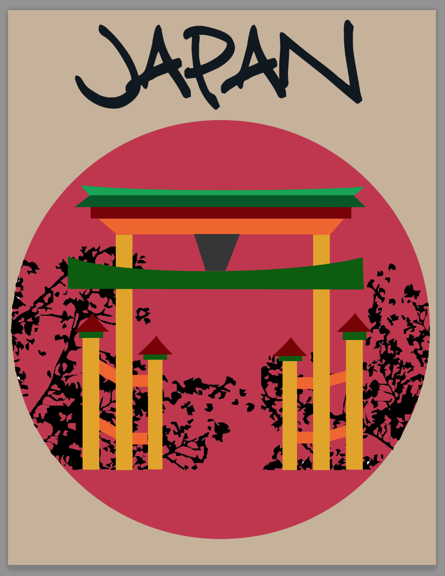 For the raster drawings, students are tasked with using a variety of digital drawing tools within Photoshop to create images of landscapes, skylines, buildings, or common dwellings from their chosen country. In some cases students choose to draw from scratch utilizing some form of inspiration (online, or a paper photograph), while other students may import an image into their project and trace certain elements using the same drawing tools. In either case, the original photograph is removed from view and the resulting work has been crafted by the student.