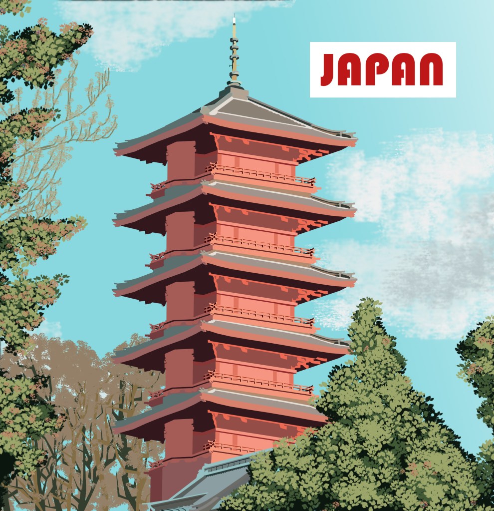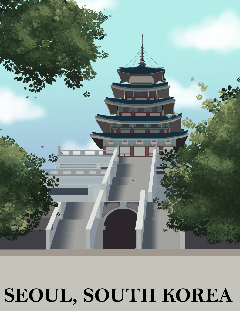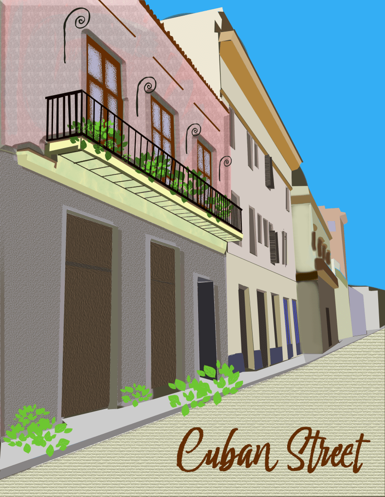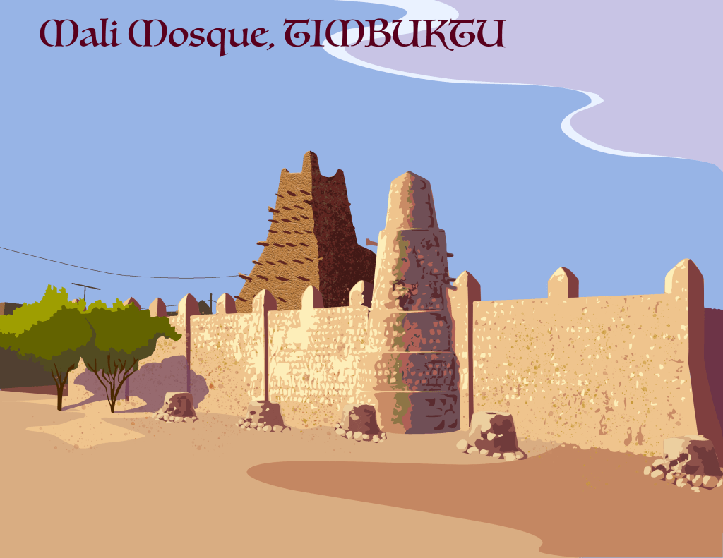 For the raster drawings, students are tasked with using a variety of digital drawing tools within Photoshop to create images of landscapes, skylines, buildings, or common dwellings from their chosen country. In some cases students choose to draw from scratch utilizing some form of inspiration (online, or a paper photograph), while other students may import an image into their project and trace certain elements using the same drawing tools. In either case, the original photograph is removed from view and the resulting work has been crafted by the student.